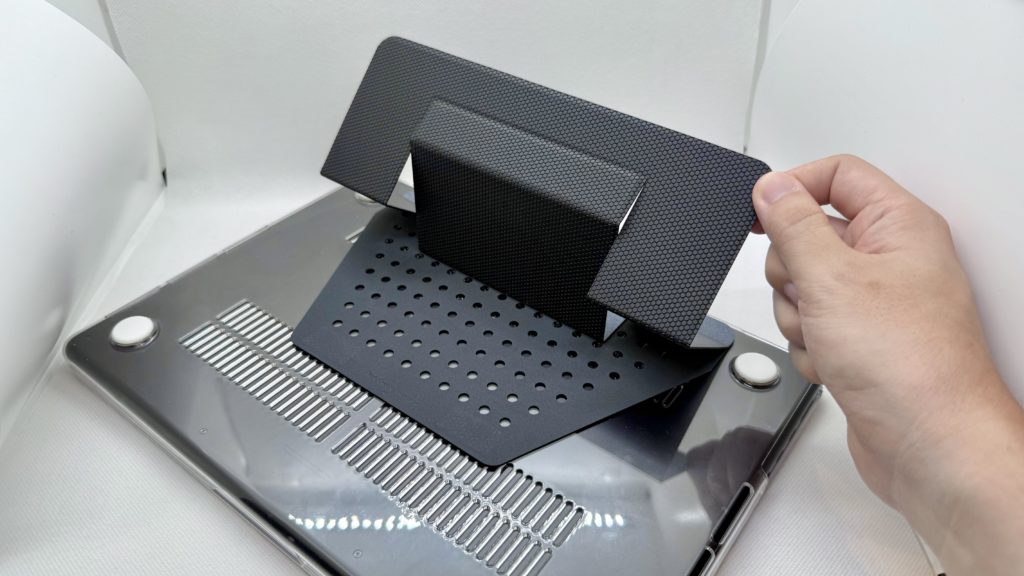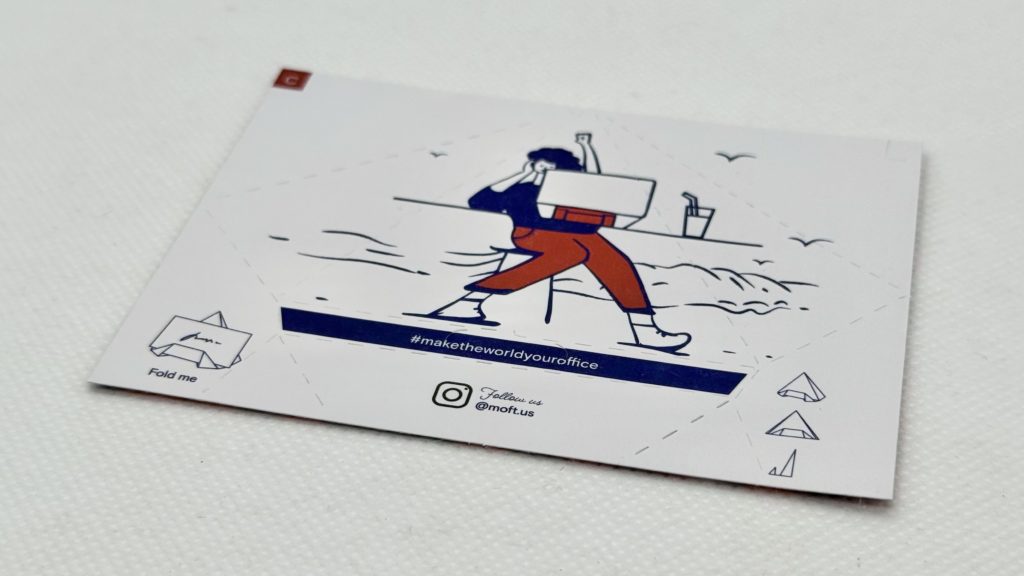 この折り紙のような仕様がMOFTの特徴とも言え、スマホやタブレットスタンドなんかも同じような仕組みで面白いスタンドを多数販売していますからね。