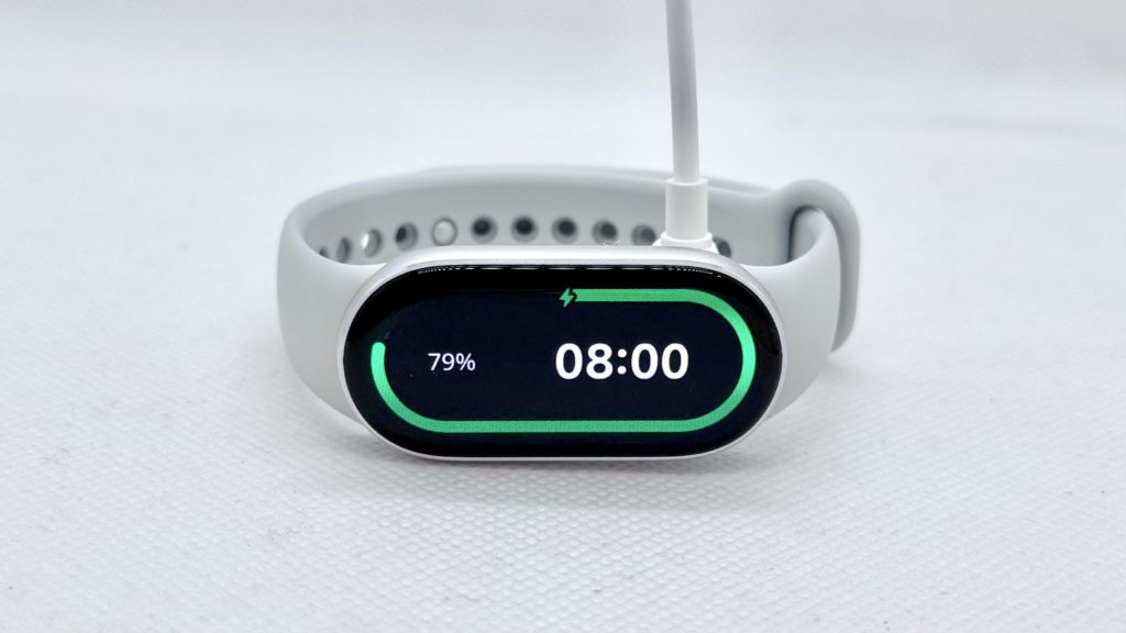 スマートバンド側はオリジナルのマグネット方式のため、本体に近づけるだけで吸着して充電が開始されます。