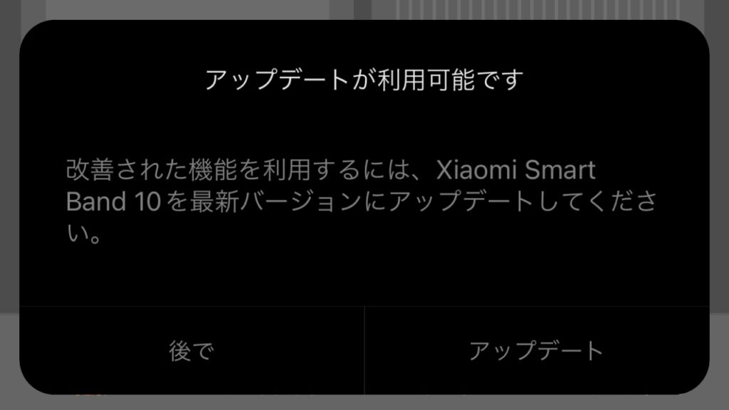 あと、筆者の場合はペアリングが完了してアプリのホーム画面が表示されるとまず最初に「アップデートが利用可能です」というポップアップが表示されたため、そのまますぐにアップデートしました。