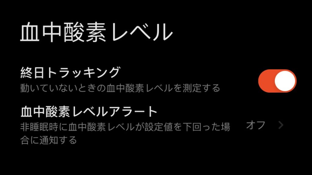 - 血中酸素レベル – 終日トラッキング → オン (アラートは任意)