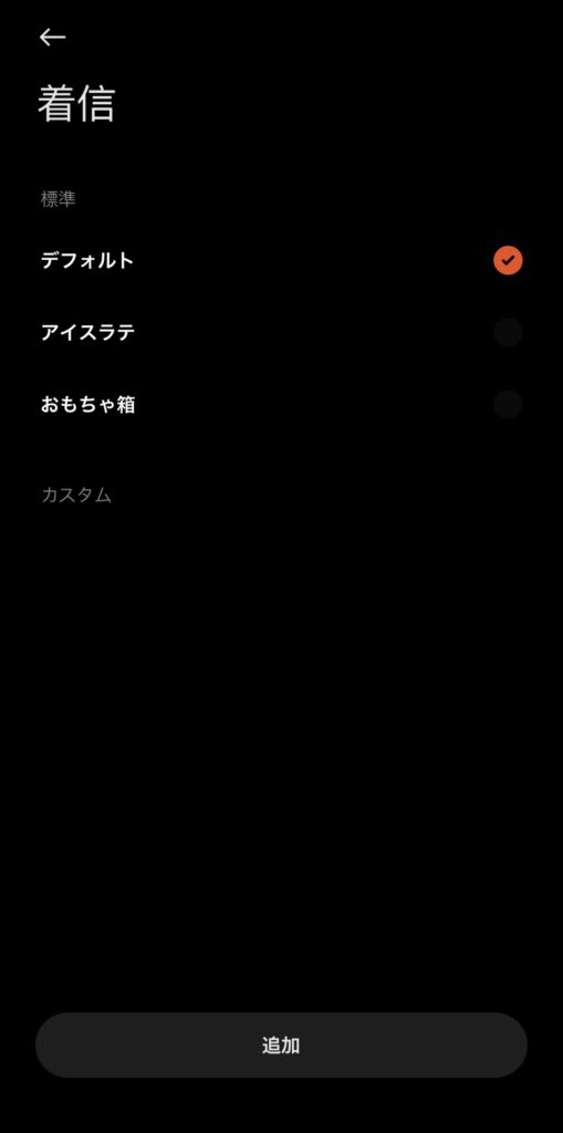 もう一つ、ここまで触れていない9との違いでいうと、前回も触れたバイブレーションの機能に付随した「カスタムバイブレーション」について、9では振動のパターンを自分で作成するだけでしたが、10では着信・アラーム・通知の3種類においてはいくつかのパターンが用意されているため、カスタムしなくても標準とは違う振動パターンを選べるようになりました。(変更においてはアプリ・本体どちらからでも可)