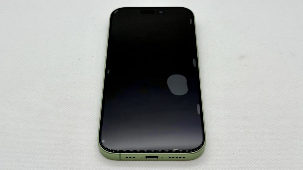 画像では分かりづらいですが、iPhoneのベゼル際0.5mmあたりの位置で上下左右全くズレなく貼ることができていて、几帳面な僕が見ても素晴らしい出来だと思います。