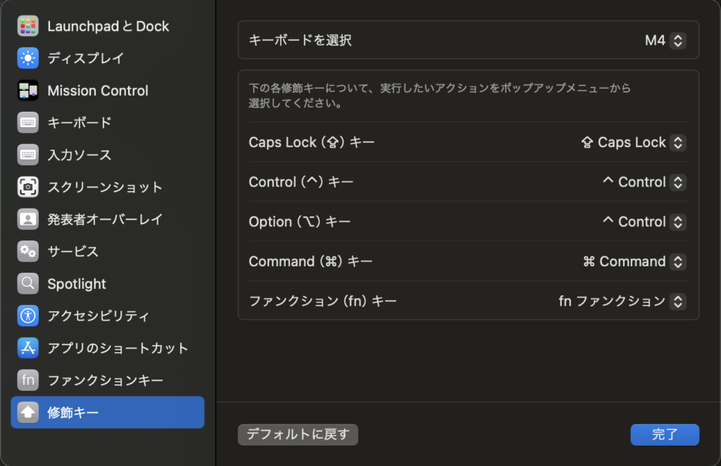 もちろん回避策もあり、Windowsだったら「PowerToys」という外部ツールを使ってキーをリマップしたり、Macでは「システム設定」からキーボードの設定に入り、「修飾キー」のControlをOptionキーに割り当ててあげれば一応なんとかできるのかなと。(その代わりリマップしたキーが使えなくなってしまいますが…)