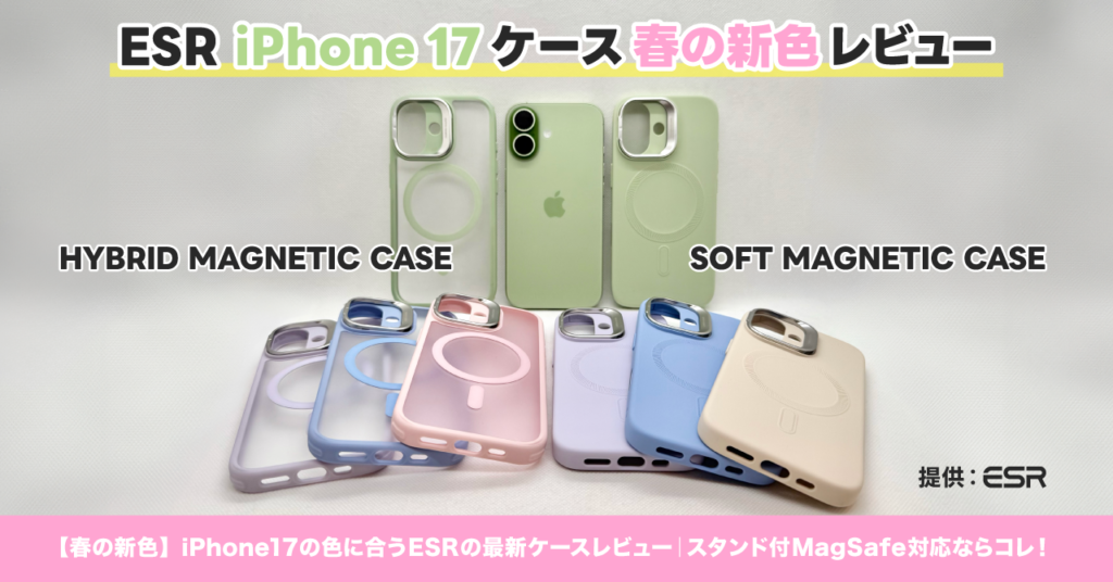 どれも爽やかなパステルカラーという感じで、これからの季節にぴったりですし、iPhone 17を使っている人であればすぐにピンとくる通り、かなり本体カラーを意識した色味になっていることが分かります。