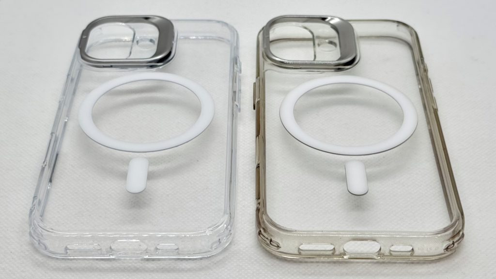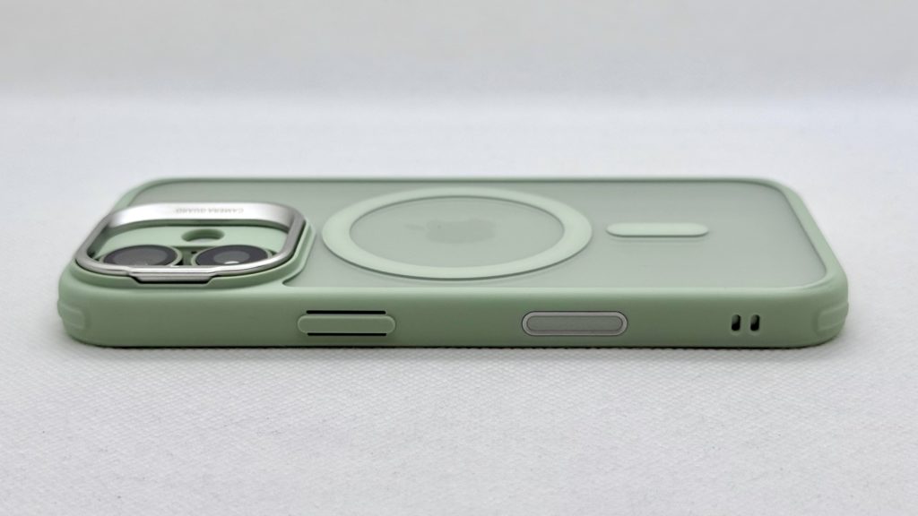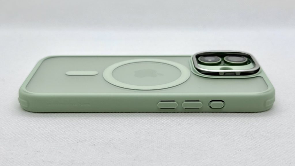 そういった素材やちょっとした仕様の違いがあるものの、その他の特徴に関してはClassicハイブリッドシリーズと同じで、隠れスタンドはあるし、カメラコントロールボタンもあり、MagSafeにはもちろん対応していて、25Wワイヤレス充電にも対応しているというのがこのCloudシリーズの特徴となっています。