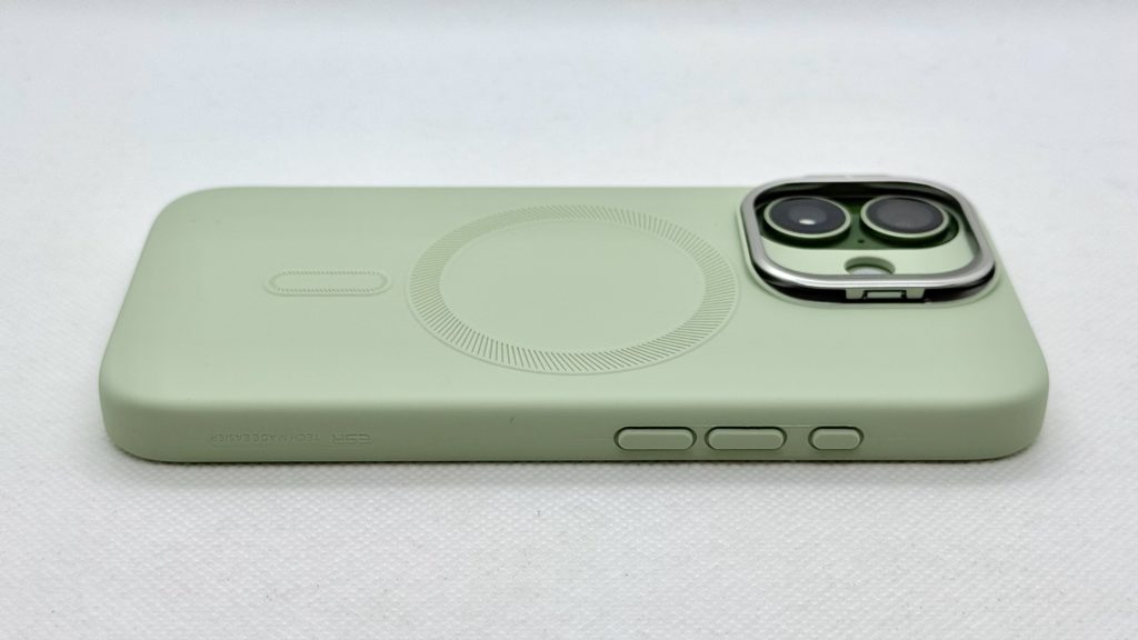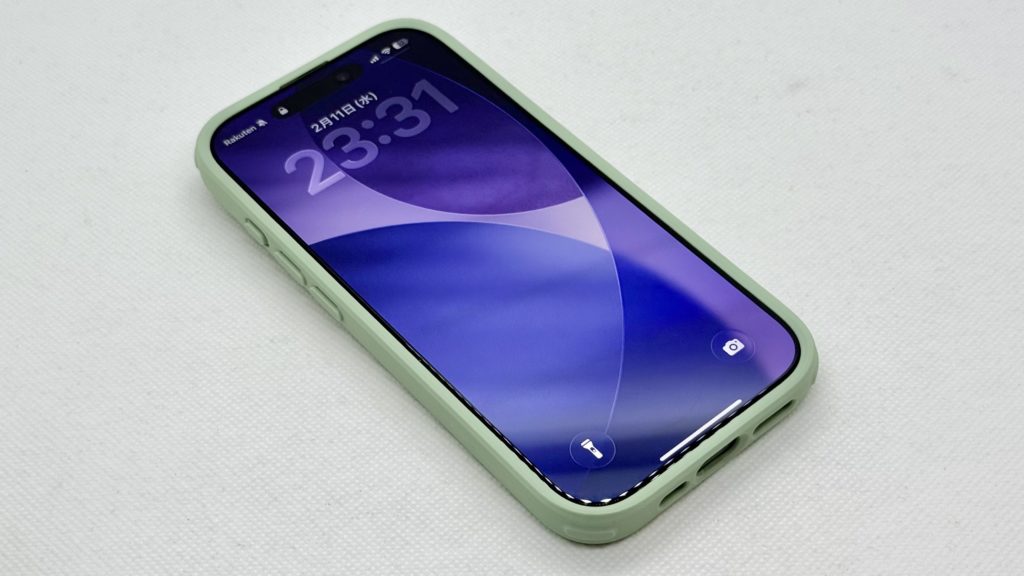 筆者の使うiPhone 17はセージ色なので、早速同じグリーン系の「アジサイグリーン」にて装着感等を見ていきましょう!