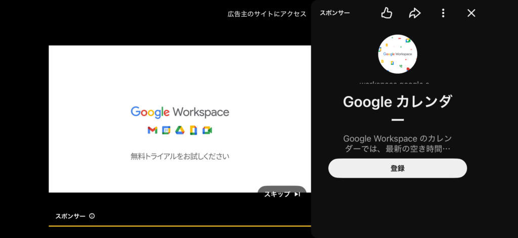 と言うのもYouTube動画は様々なアスペクト比に対応していて、横画面ではどんなアスペクト比でも画面内に収まるように表示されるため、広告のスキップボタンが必ず同じ場所に表示されるのに対して、縦画面では、広告動画のアスペクト比ごとにスキップボタンの位置も変わってしまうからです。
